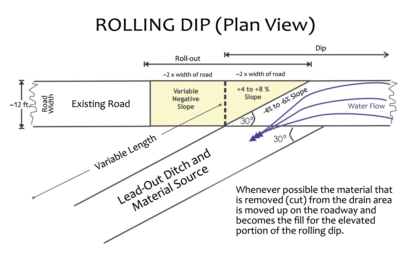 – collects surface runoff and directs the flow across the roadway to reduce erosion