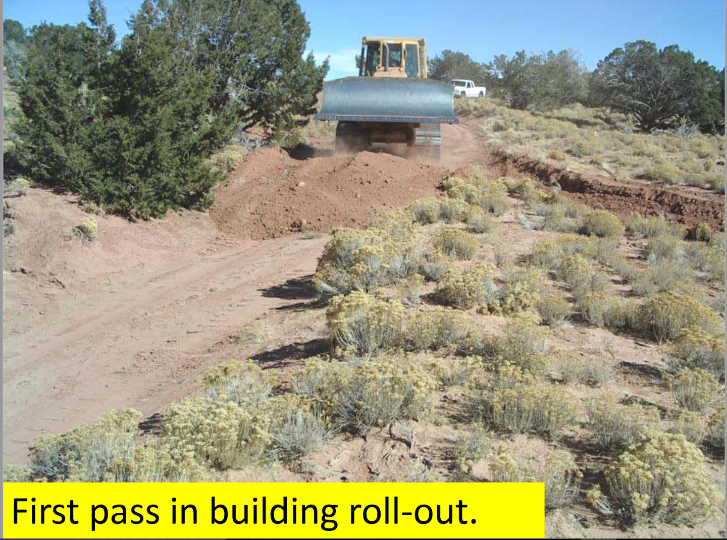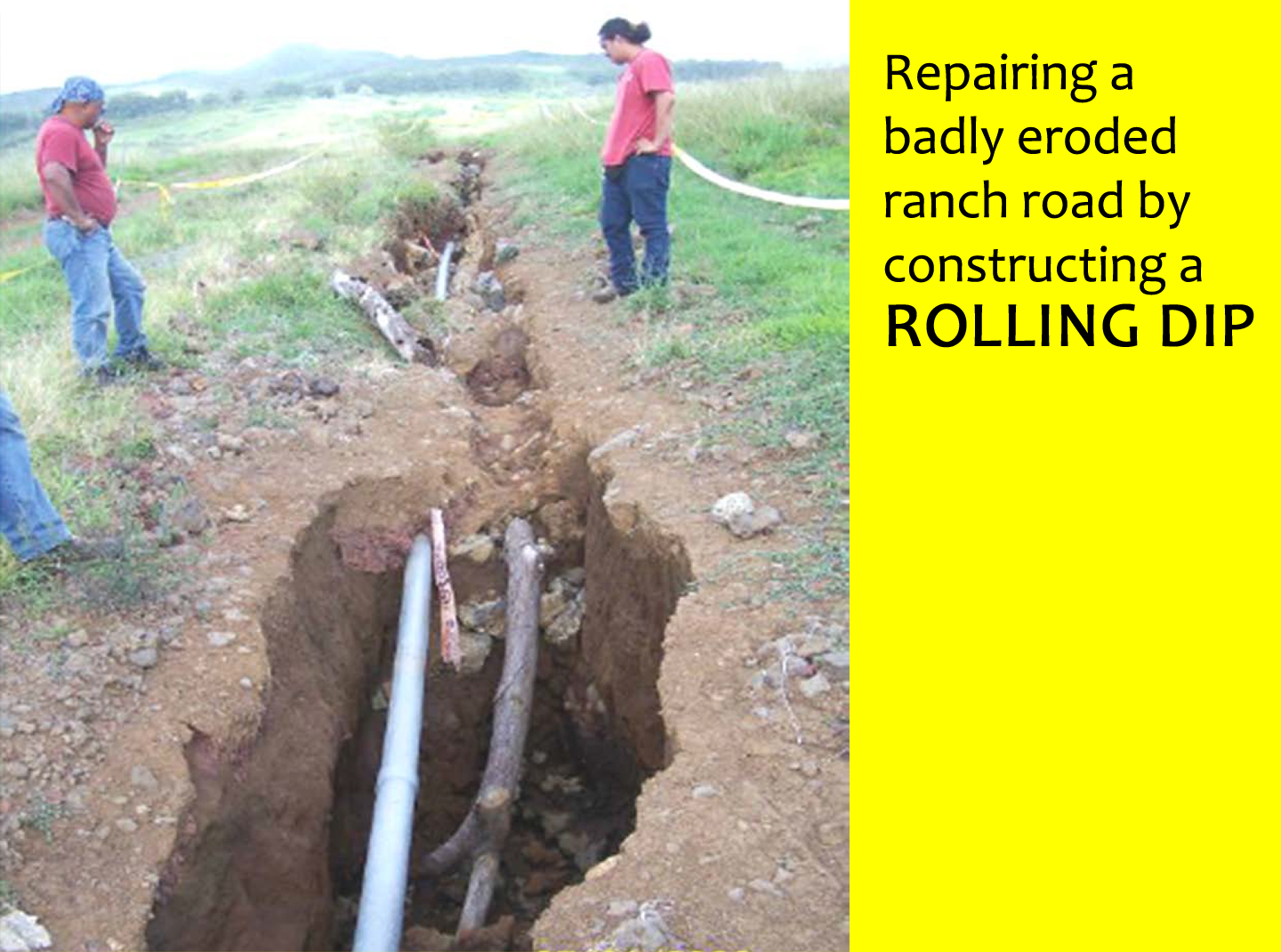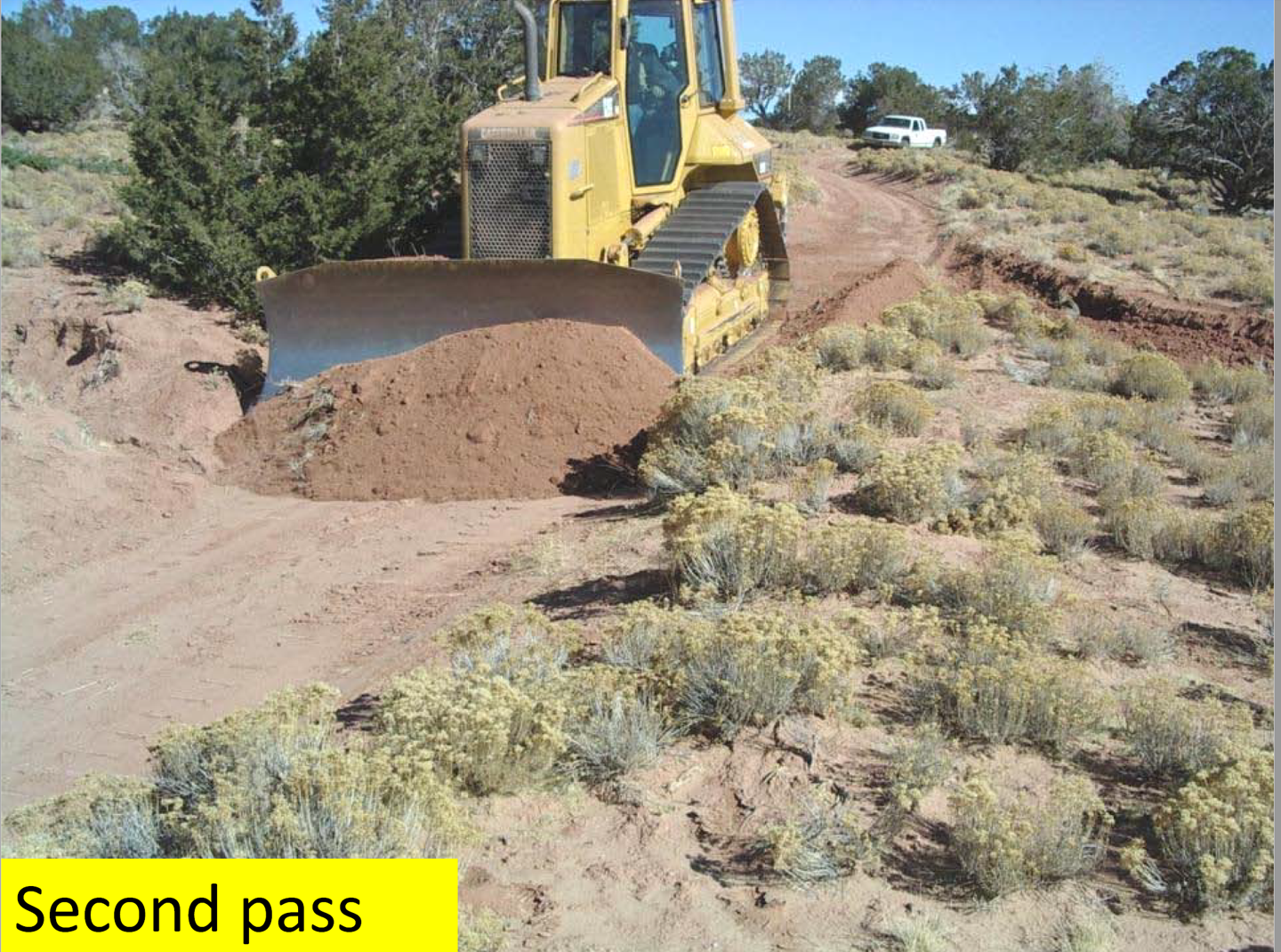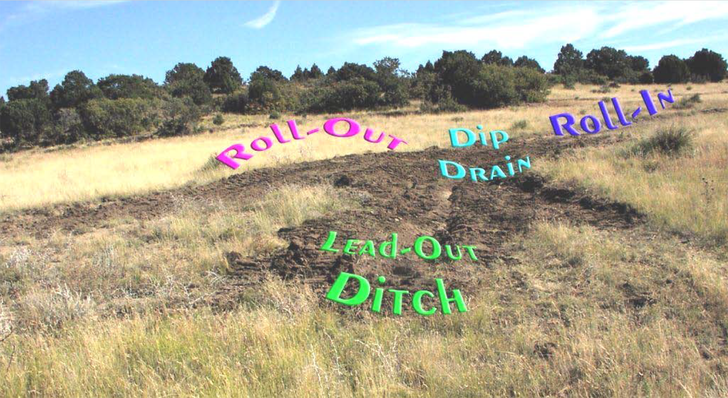 Ranch roads can be a constant maintenance task if not designed well. There are several spots the property that can be reshaped to minimize erosion and thus minimize maintenance. The primary design element that is use is called a “Rolling Dip.” It is subtle solution to low maintenance road construction that blend in to the landscape.
